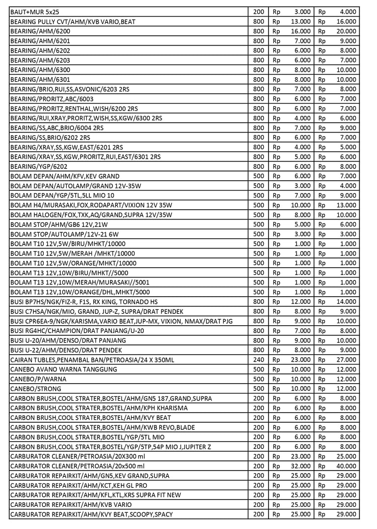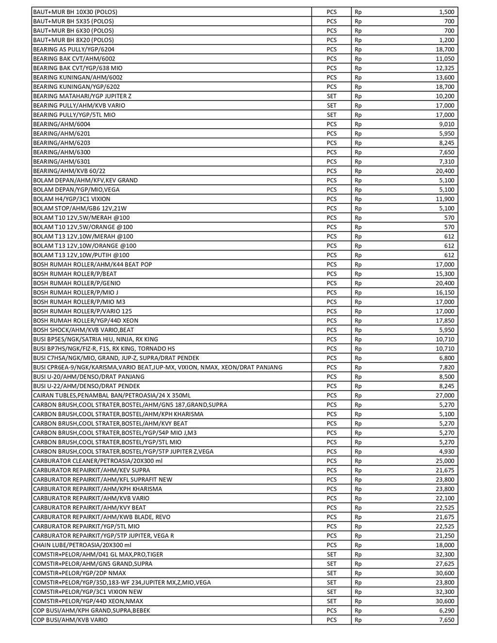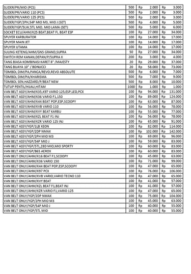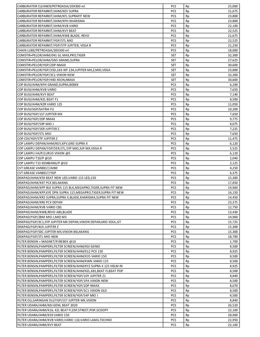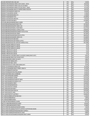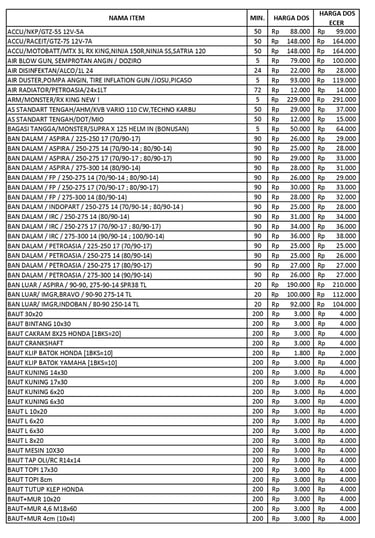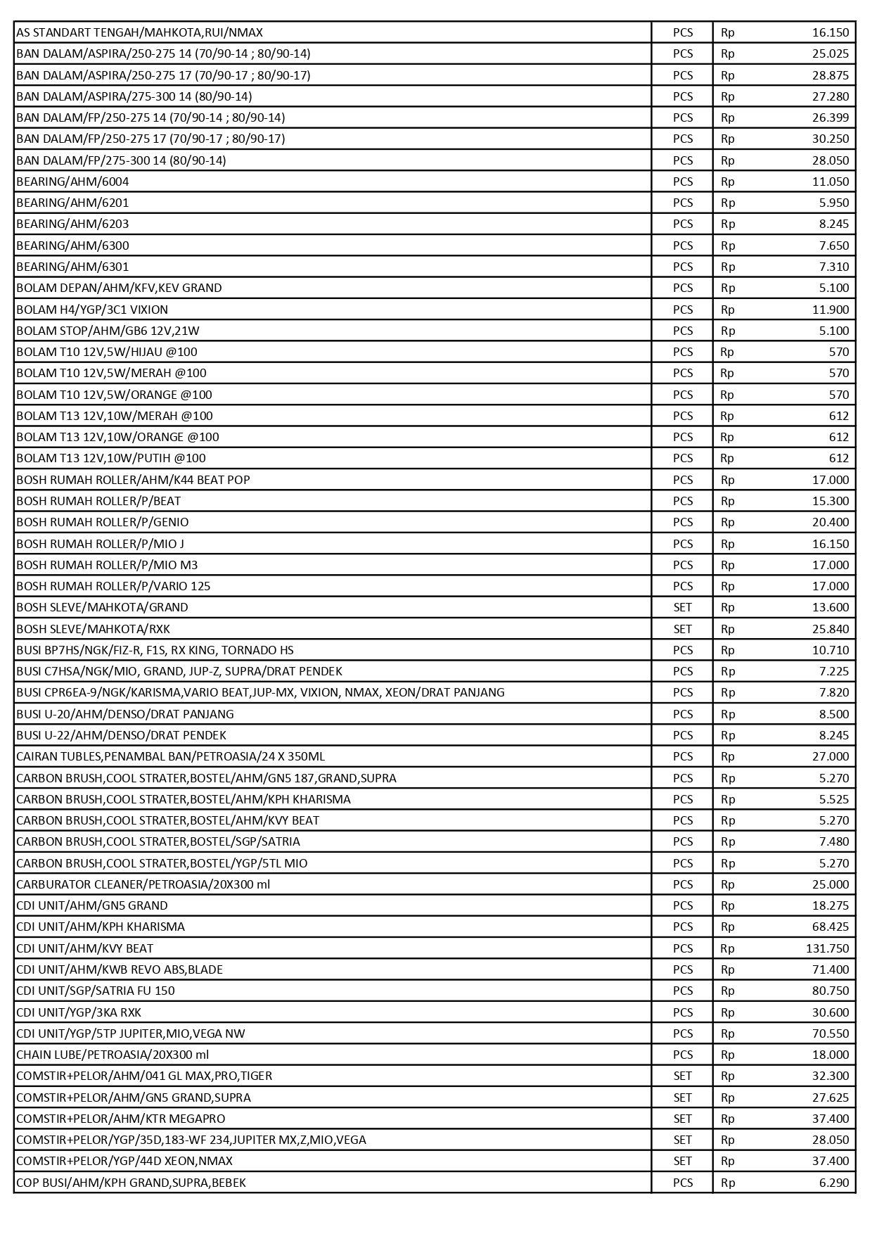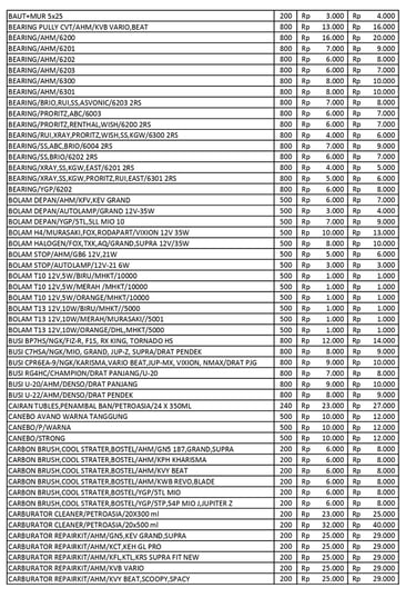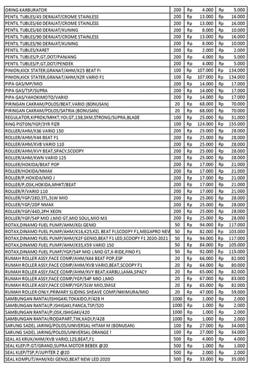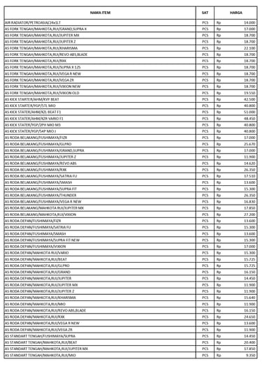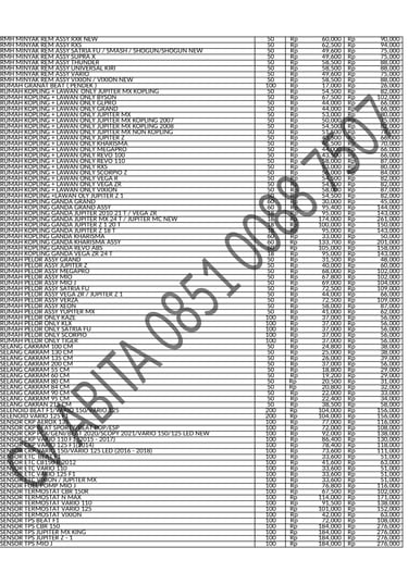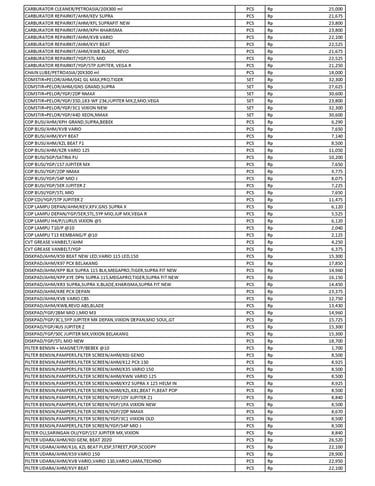 PRICELIST SPAREPART DAN OLI MOTOR 2023-2024