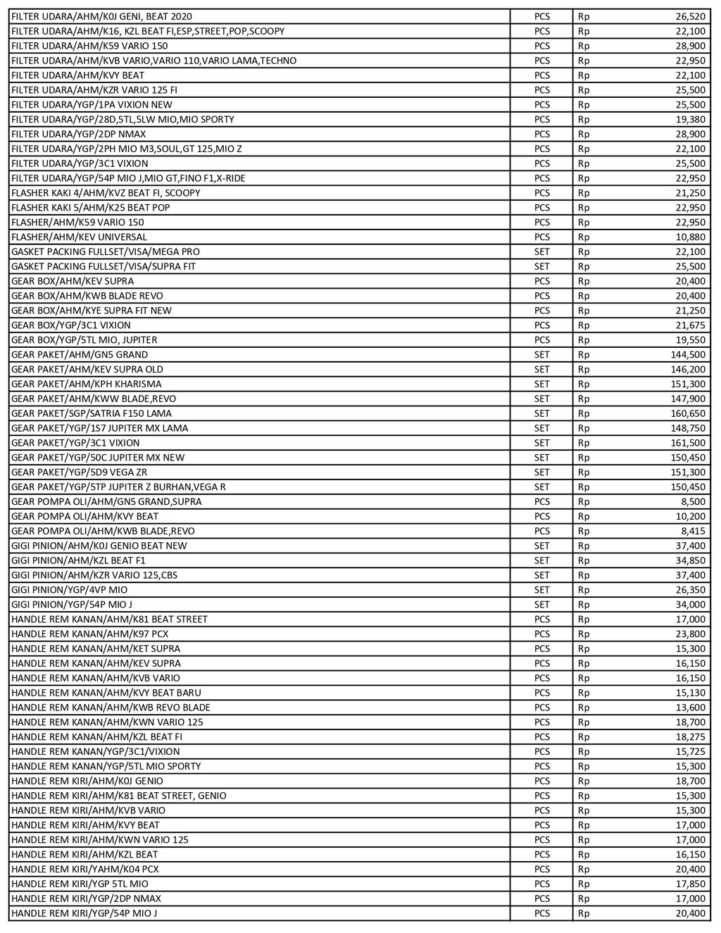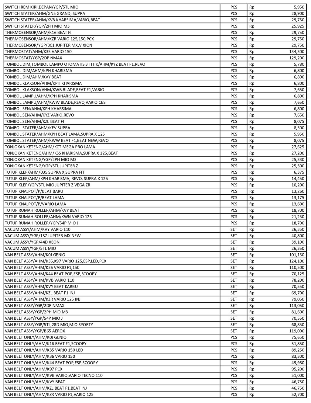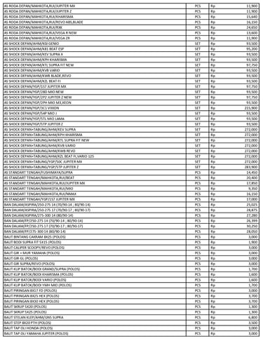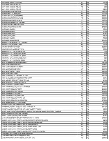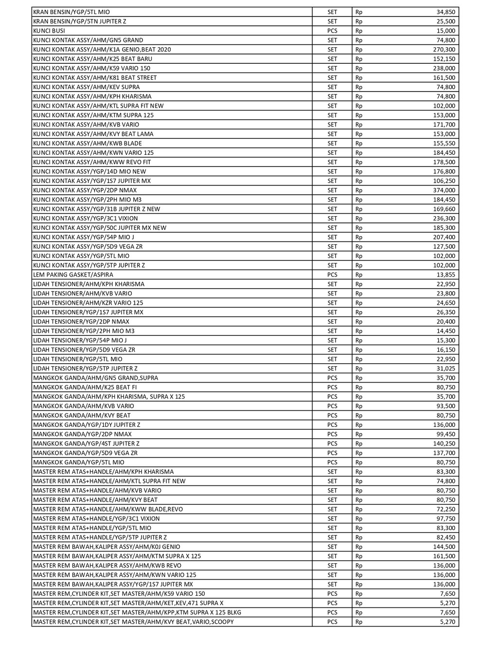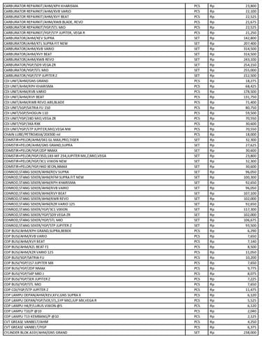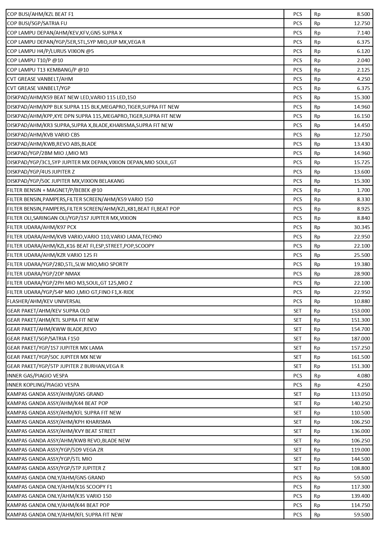 PRICELIST SPAREPART DAN OLI MOTOR 2023-2024