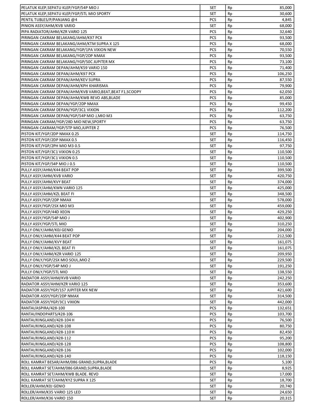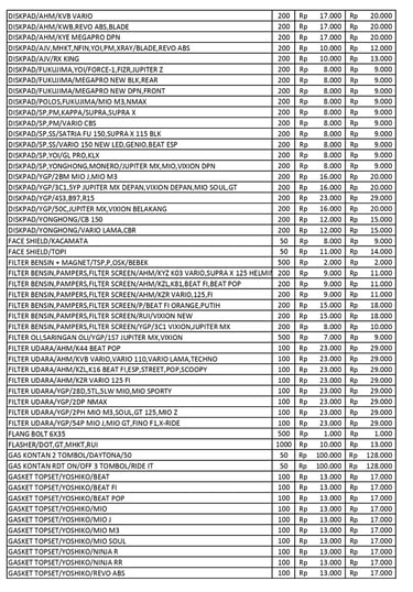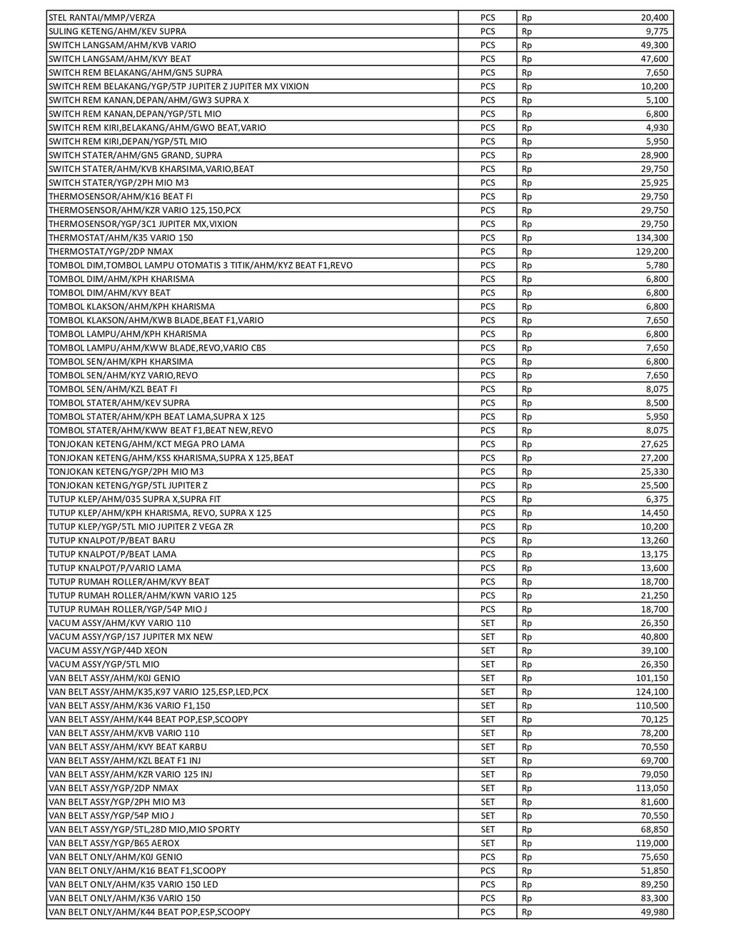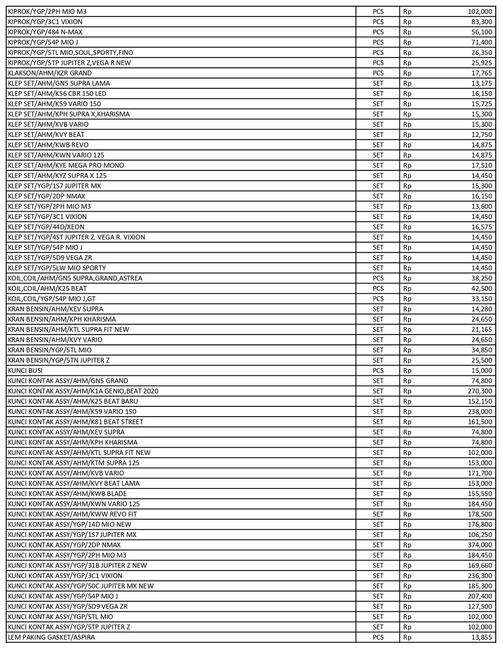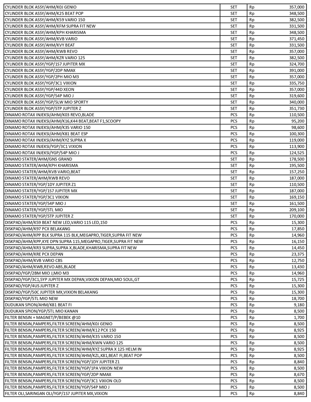 PRICELIST SPAREPART DAN OLI MOTOR 2023-2024