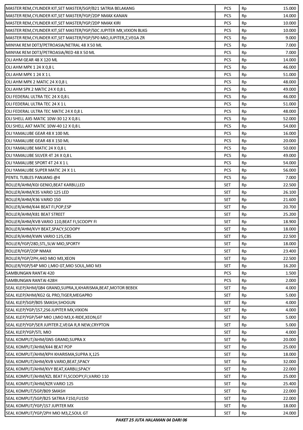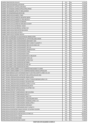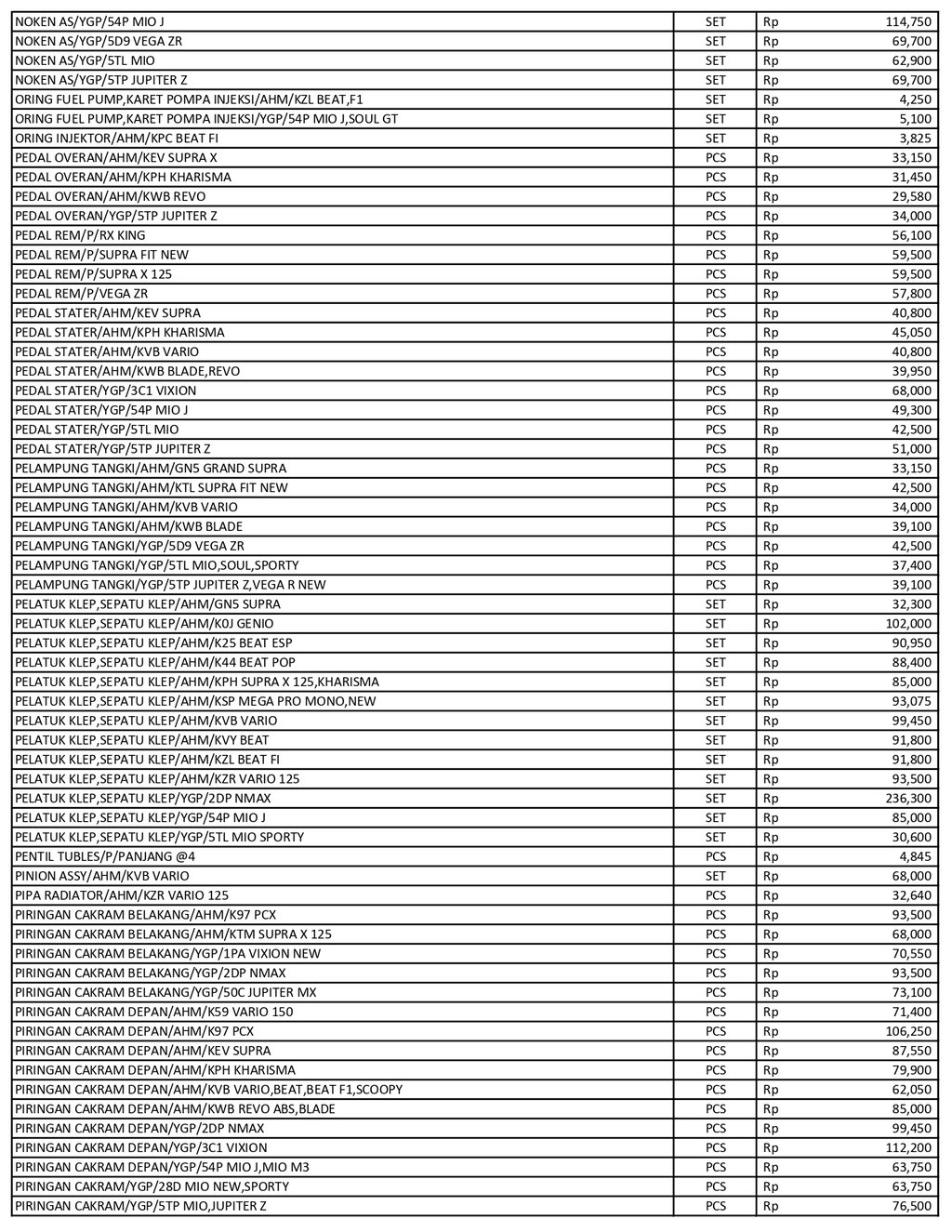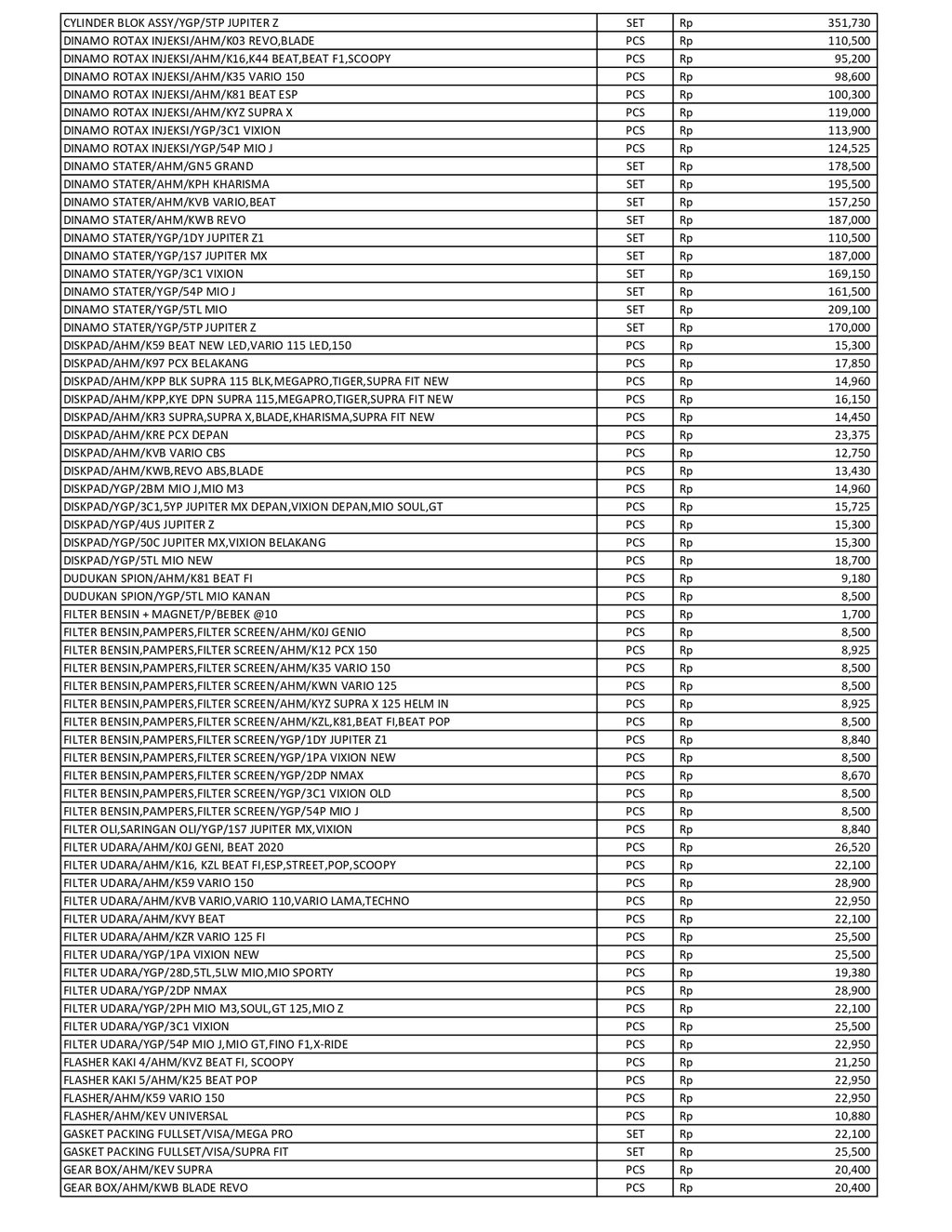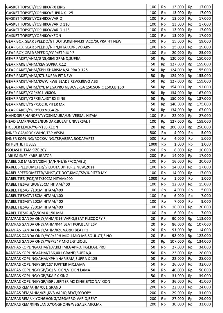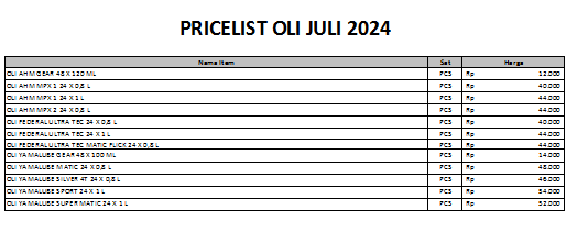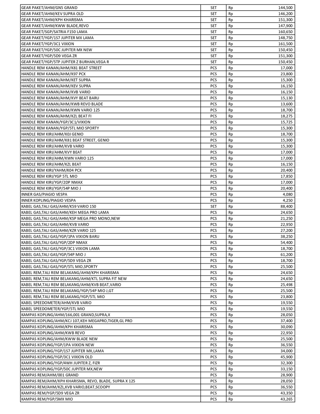 PRICELIST SPAREPART DAN OLI MOTOR 2023-2024
