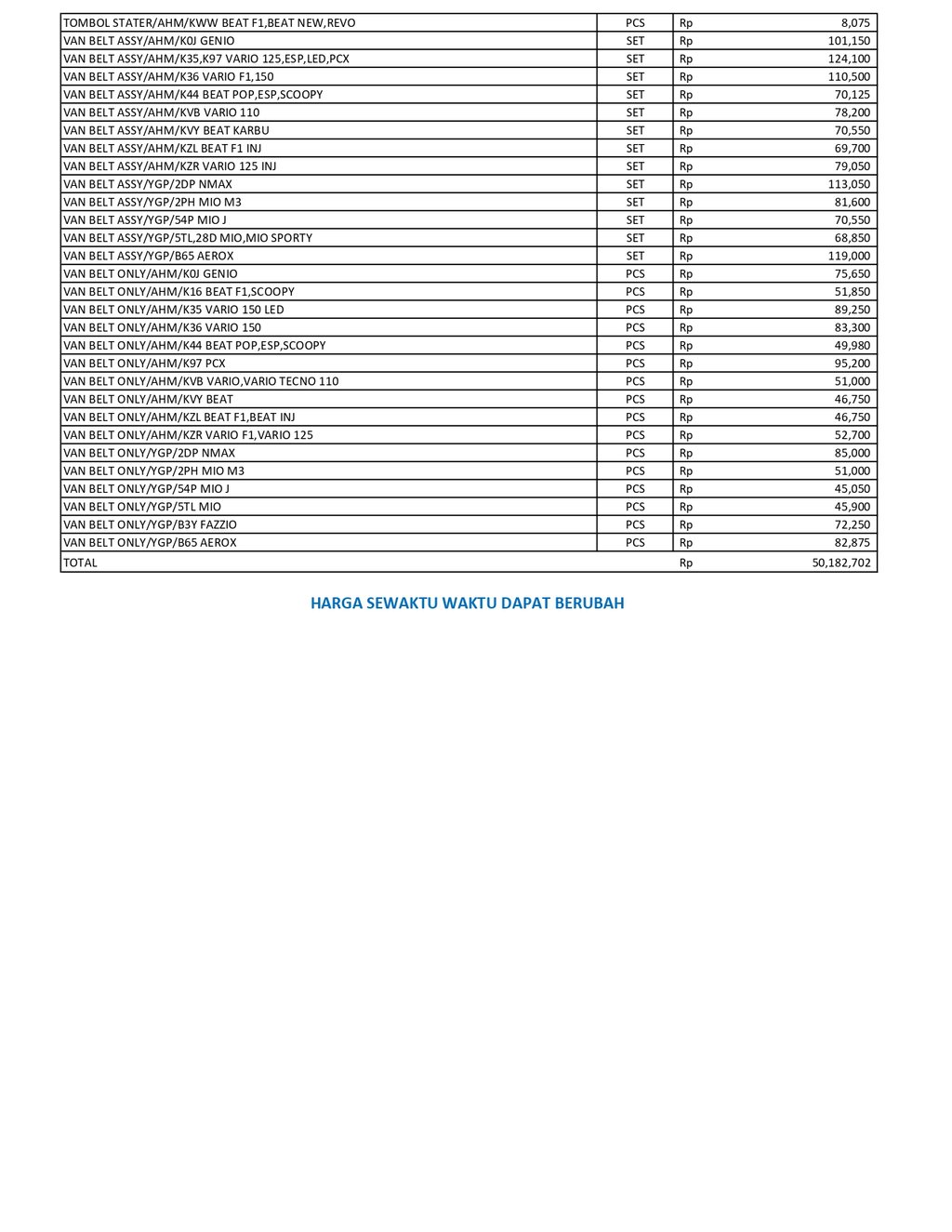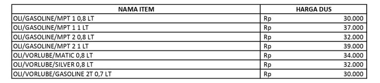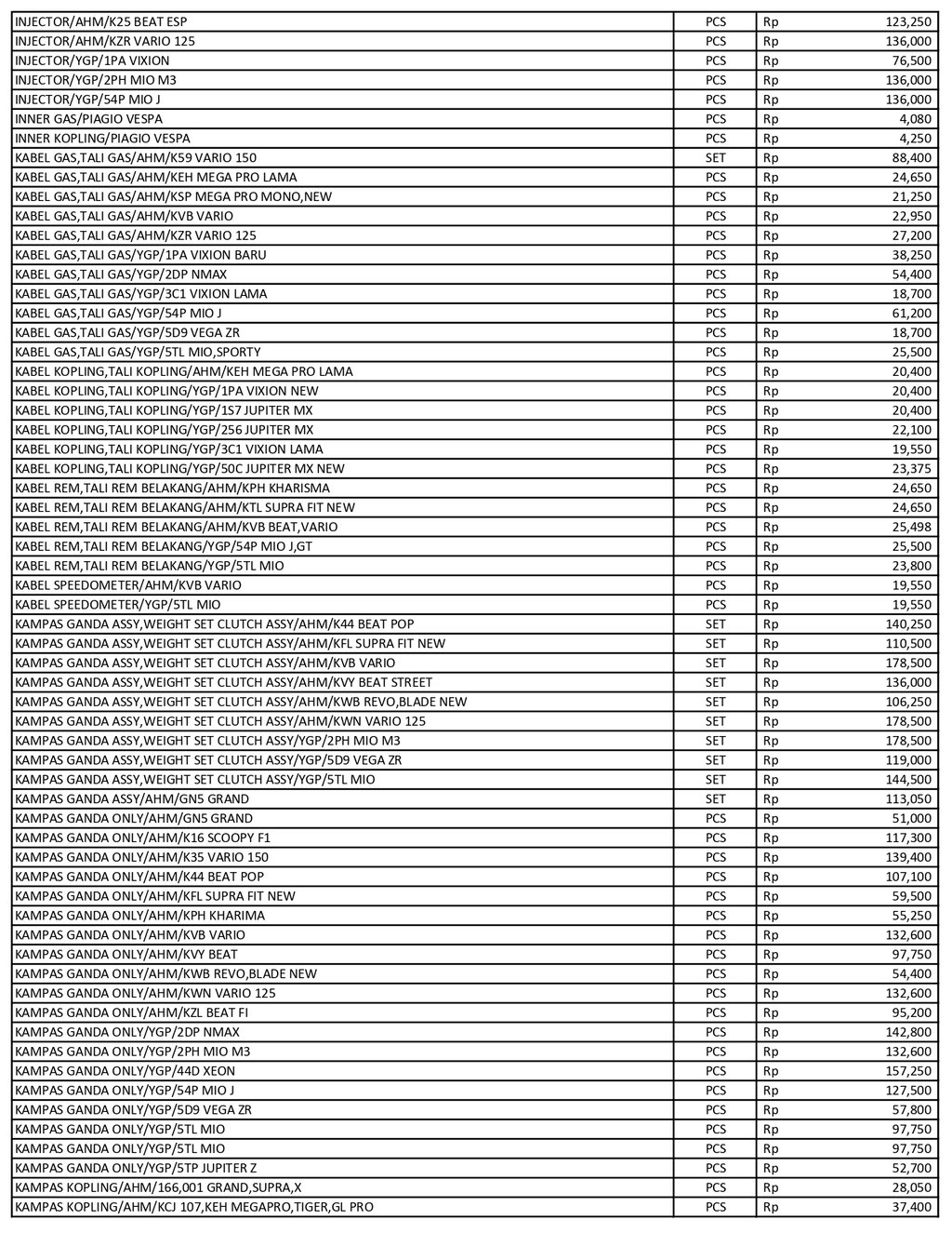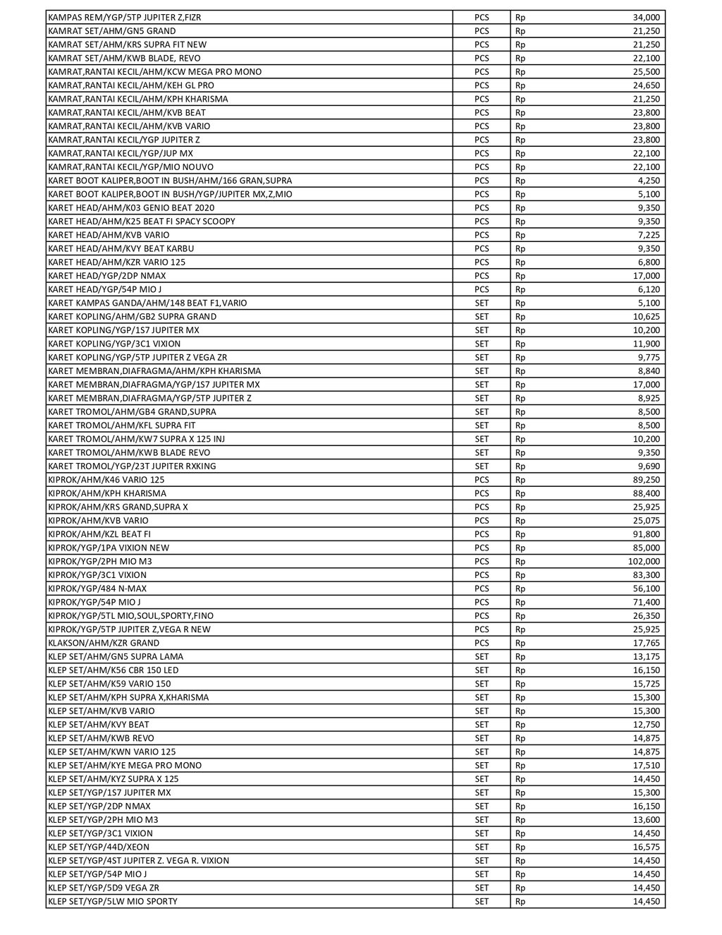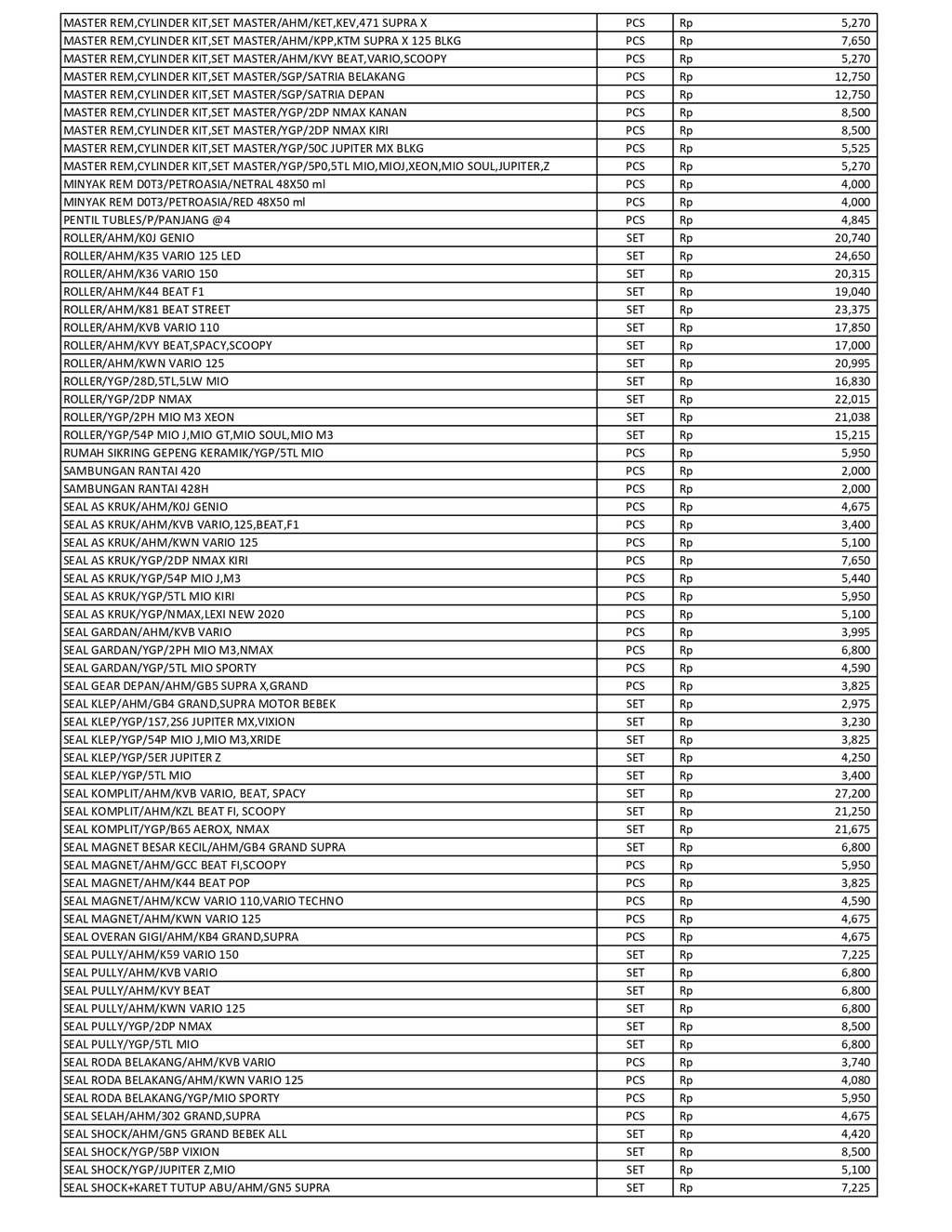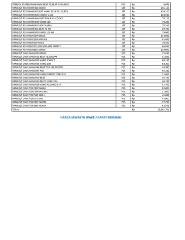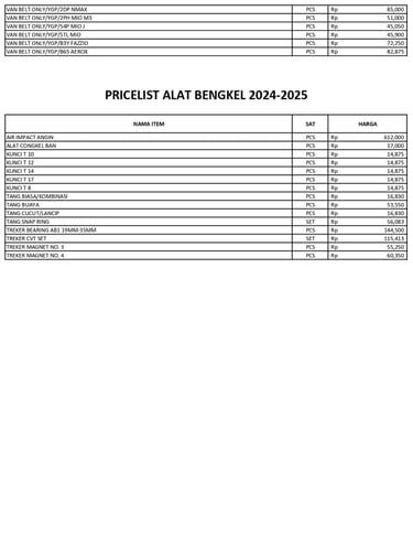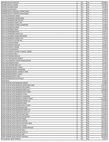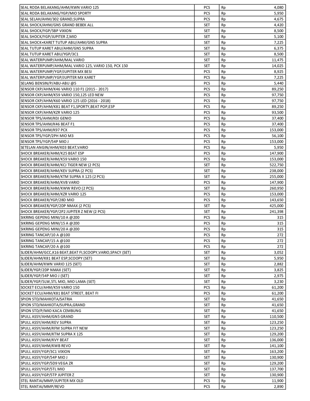 PRICELIST SPAREPART DAN OLI MOTOR 2023-2024