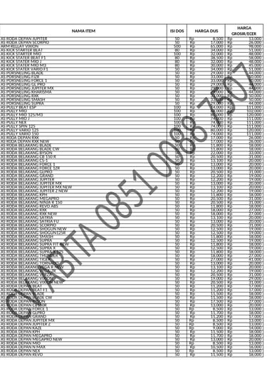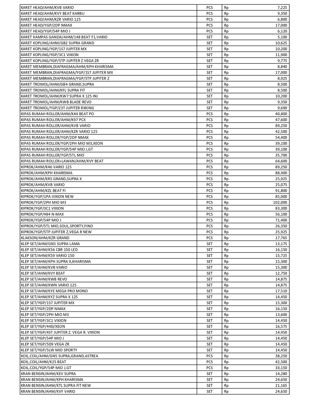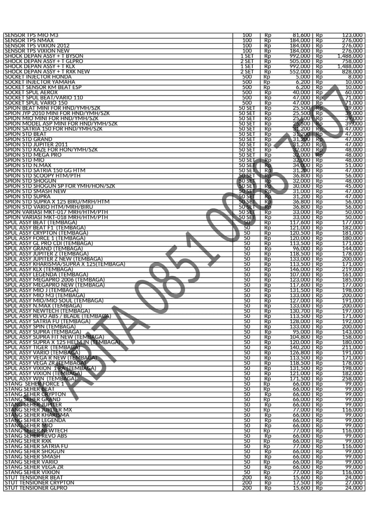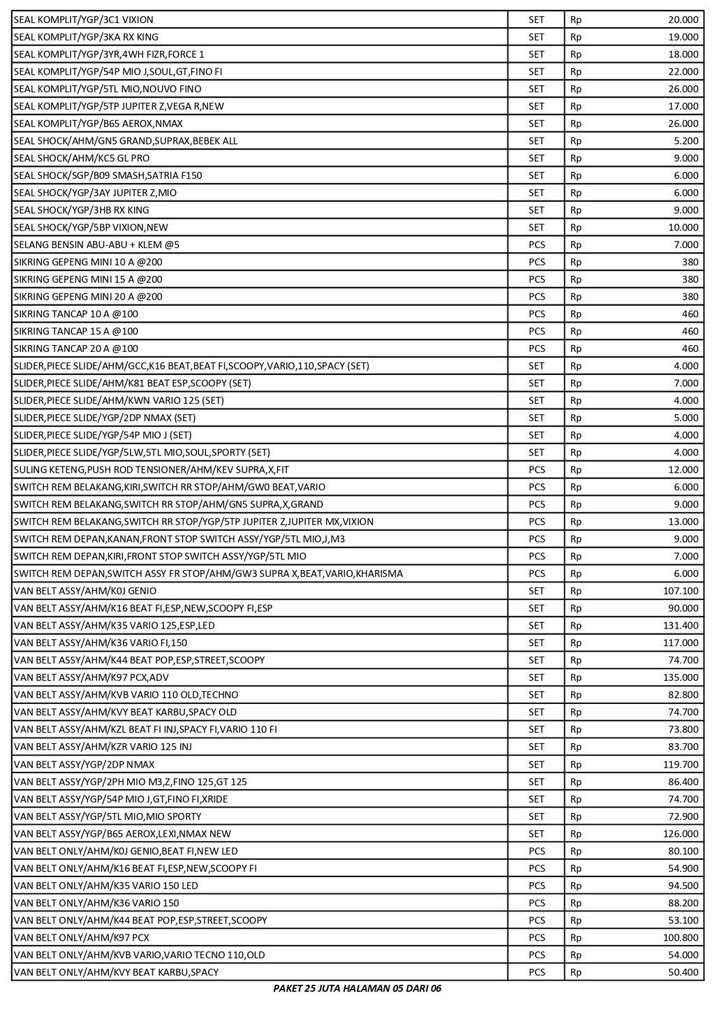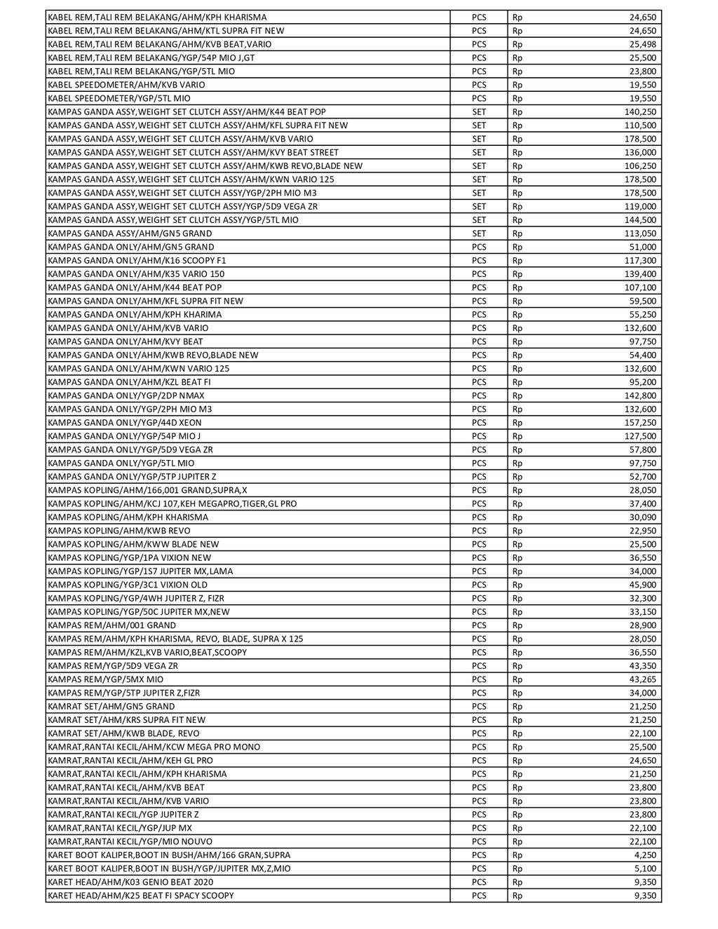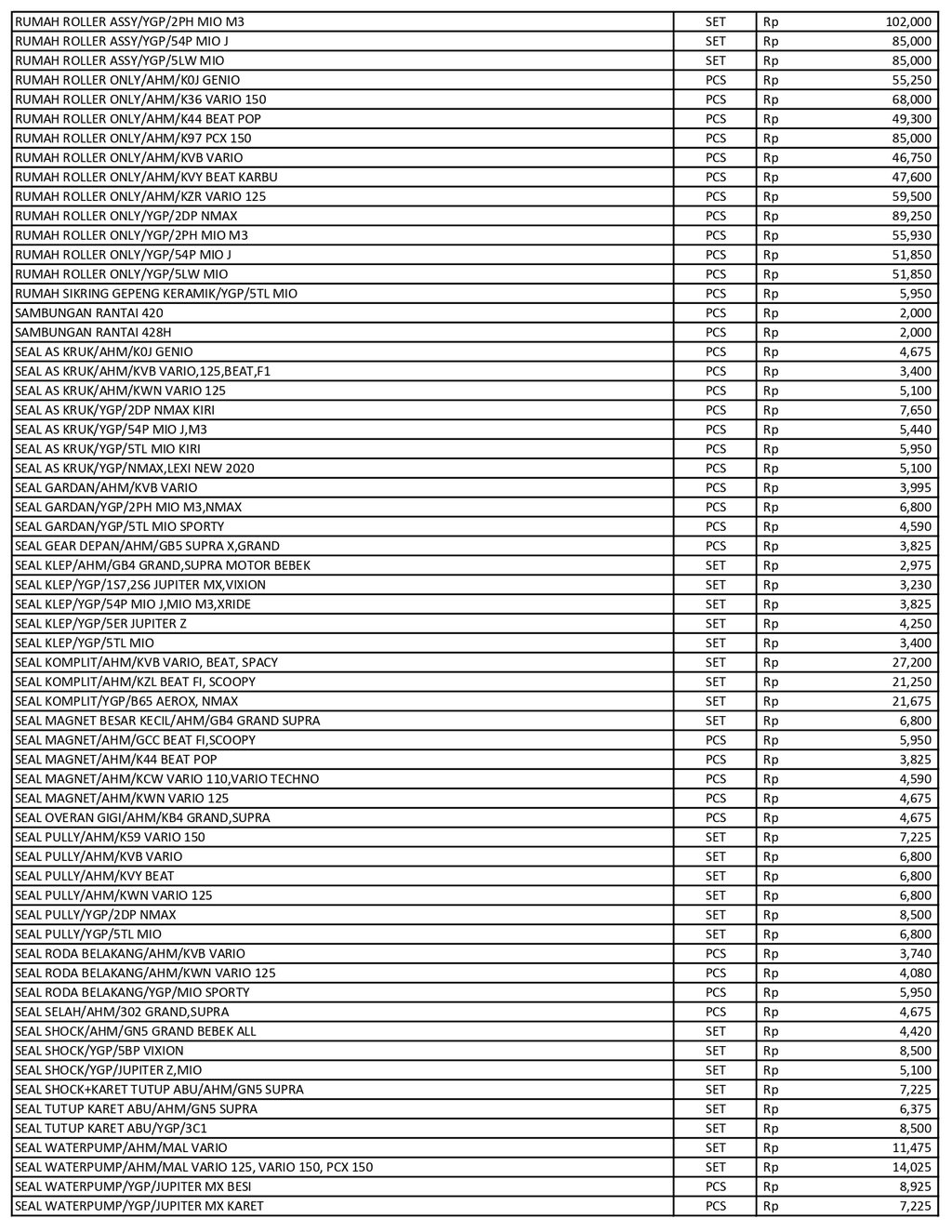 PRICELIST SPAREPART DAN OLI MOTOR 2023-2024