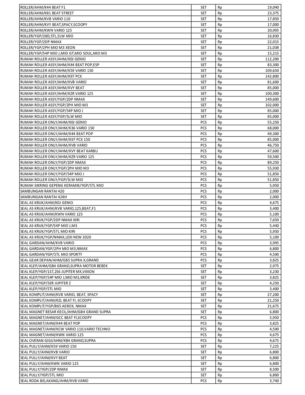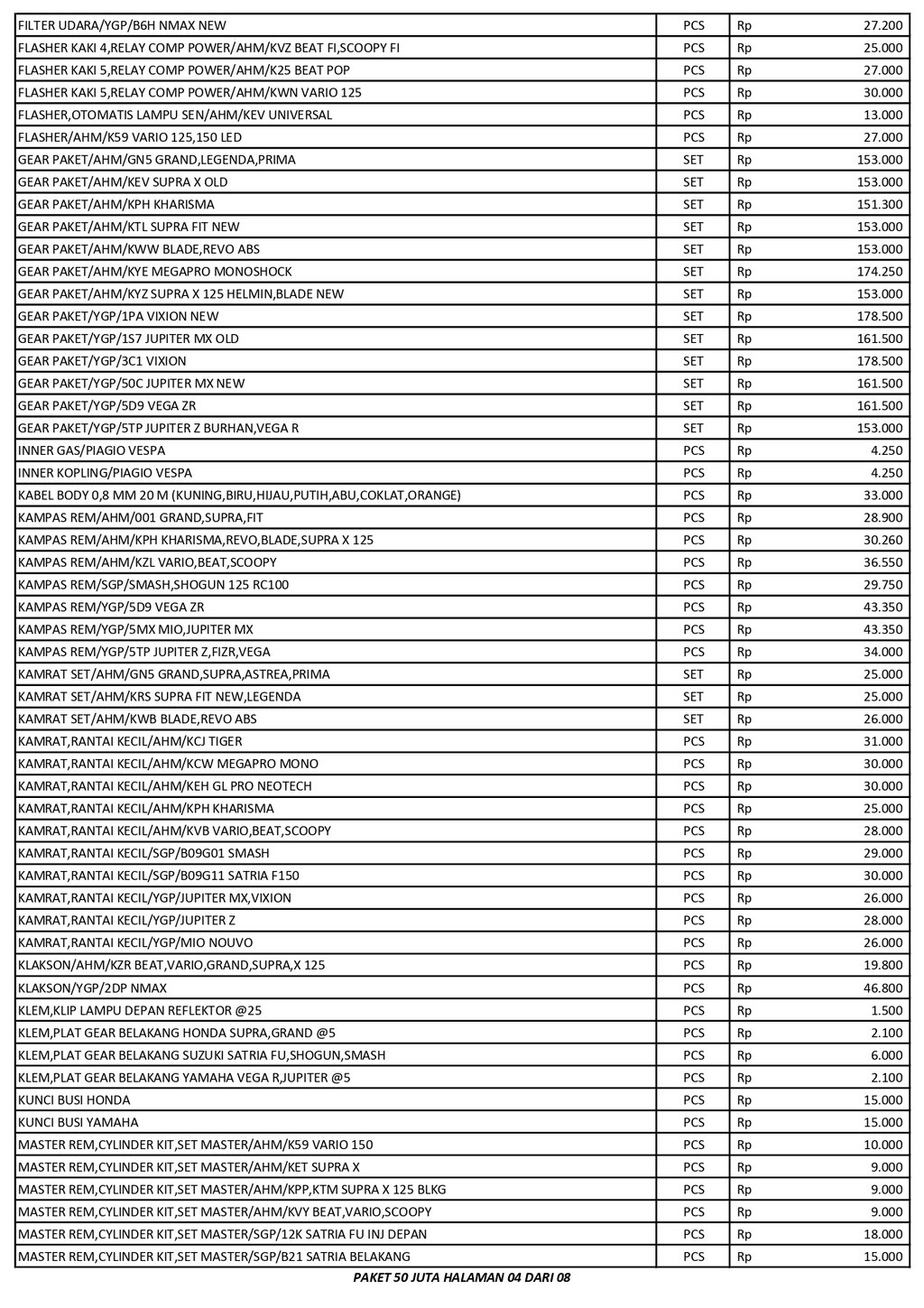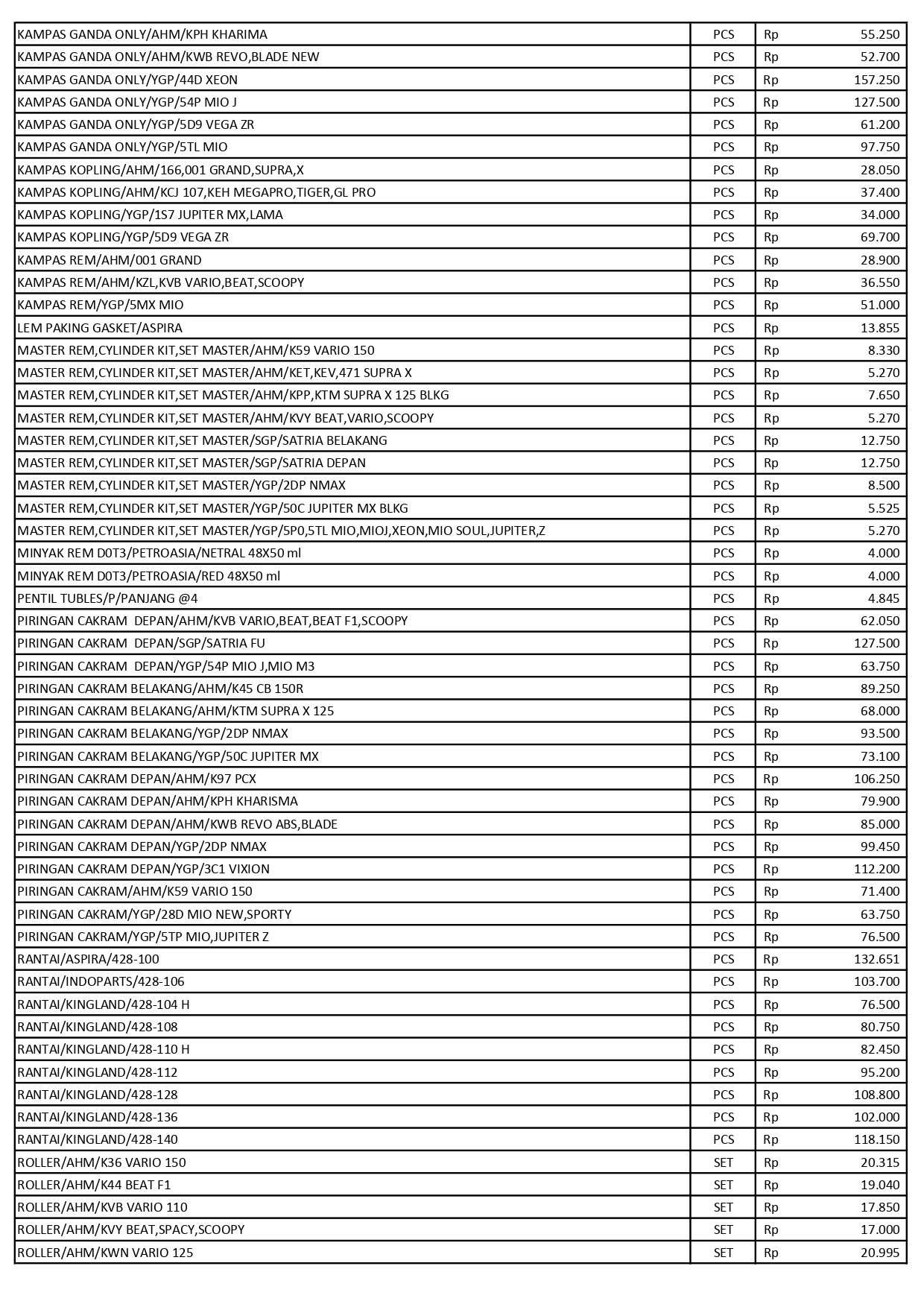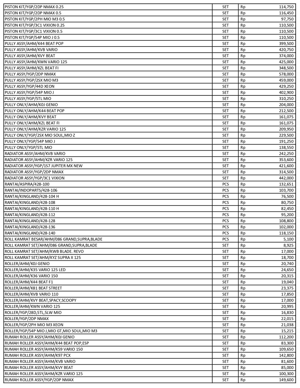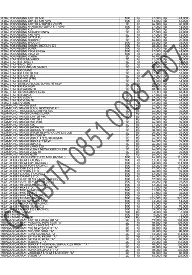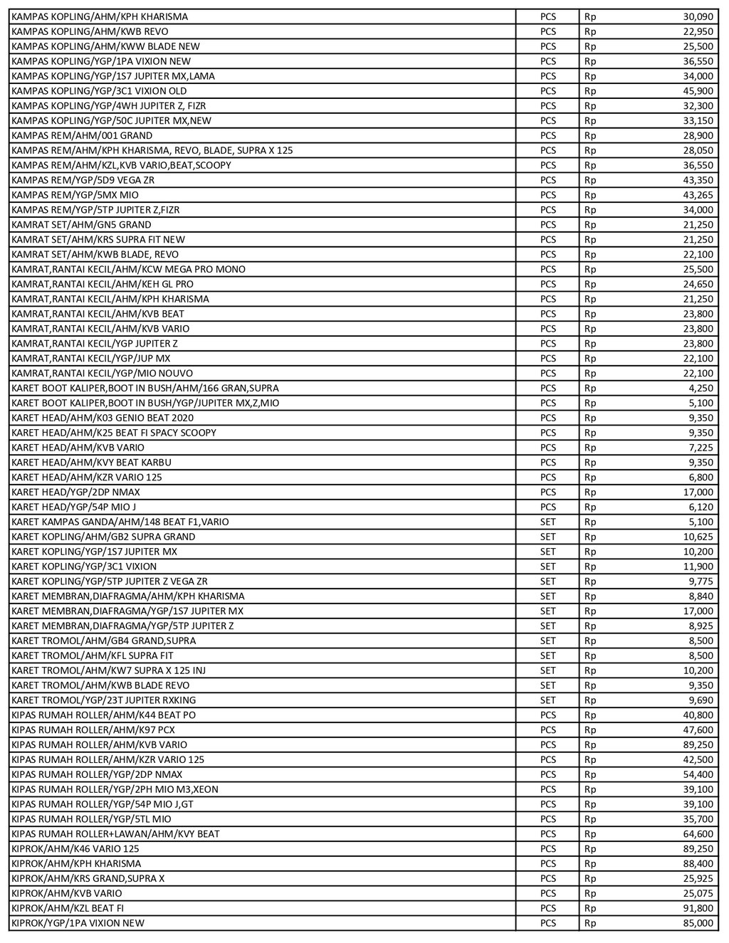 PRICELIST SPAREPART DAN OLI MOTOR 2023-2024