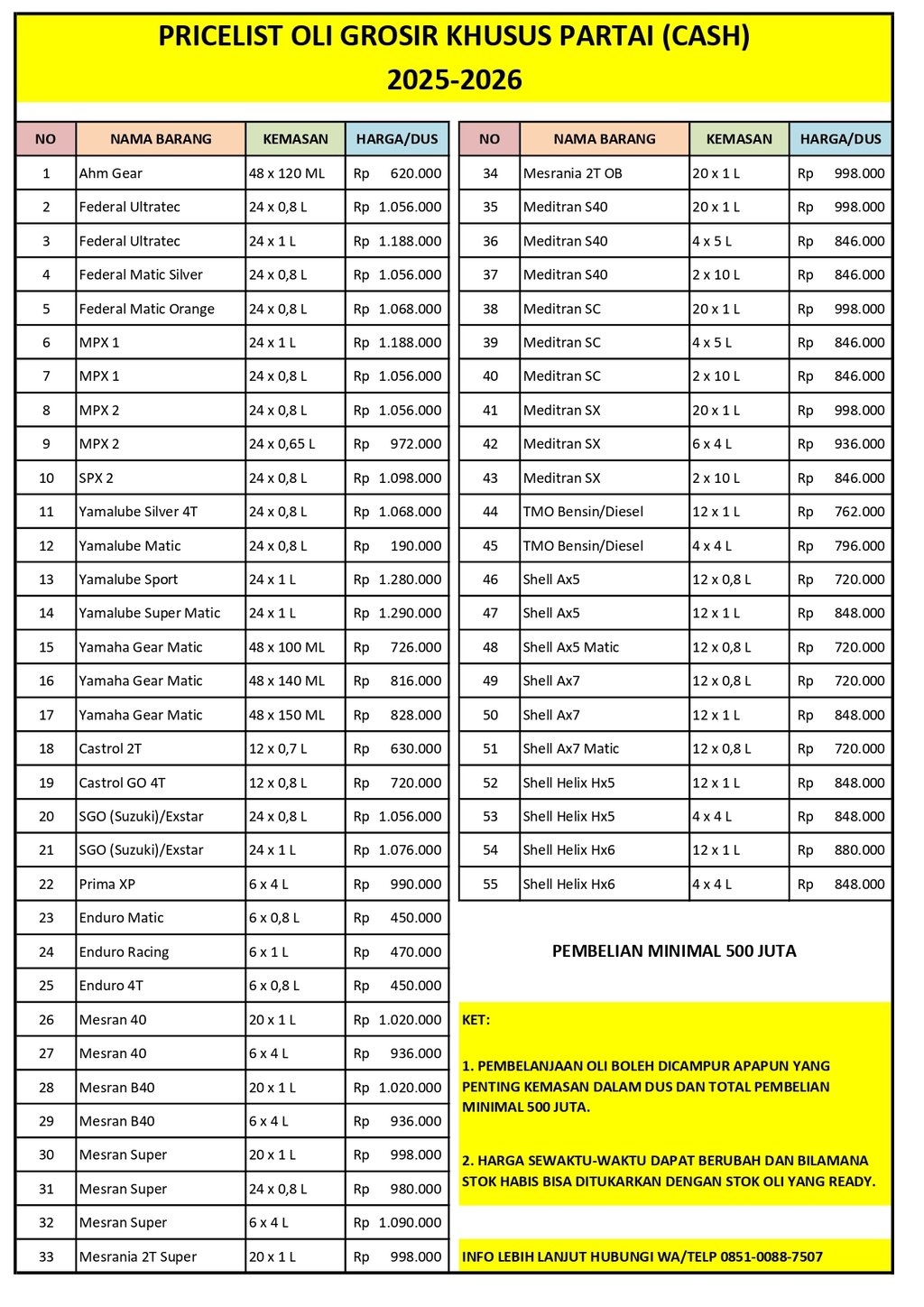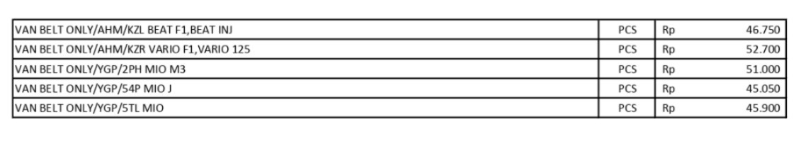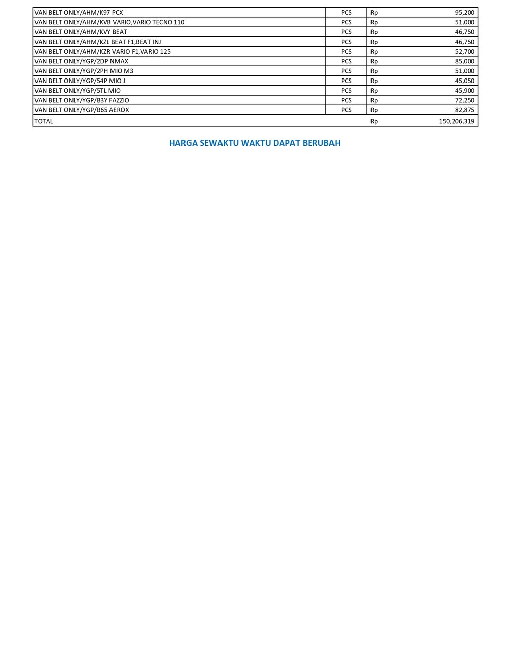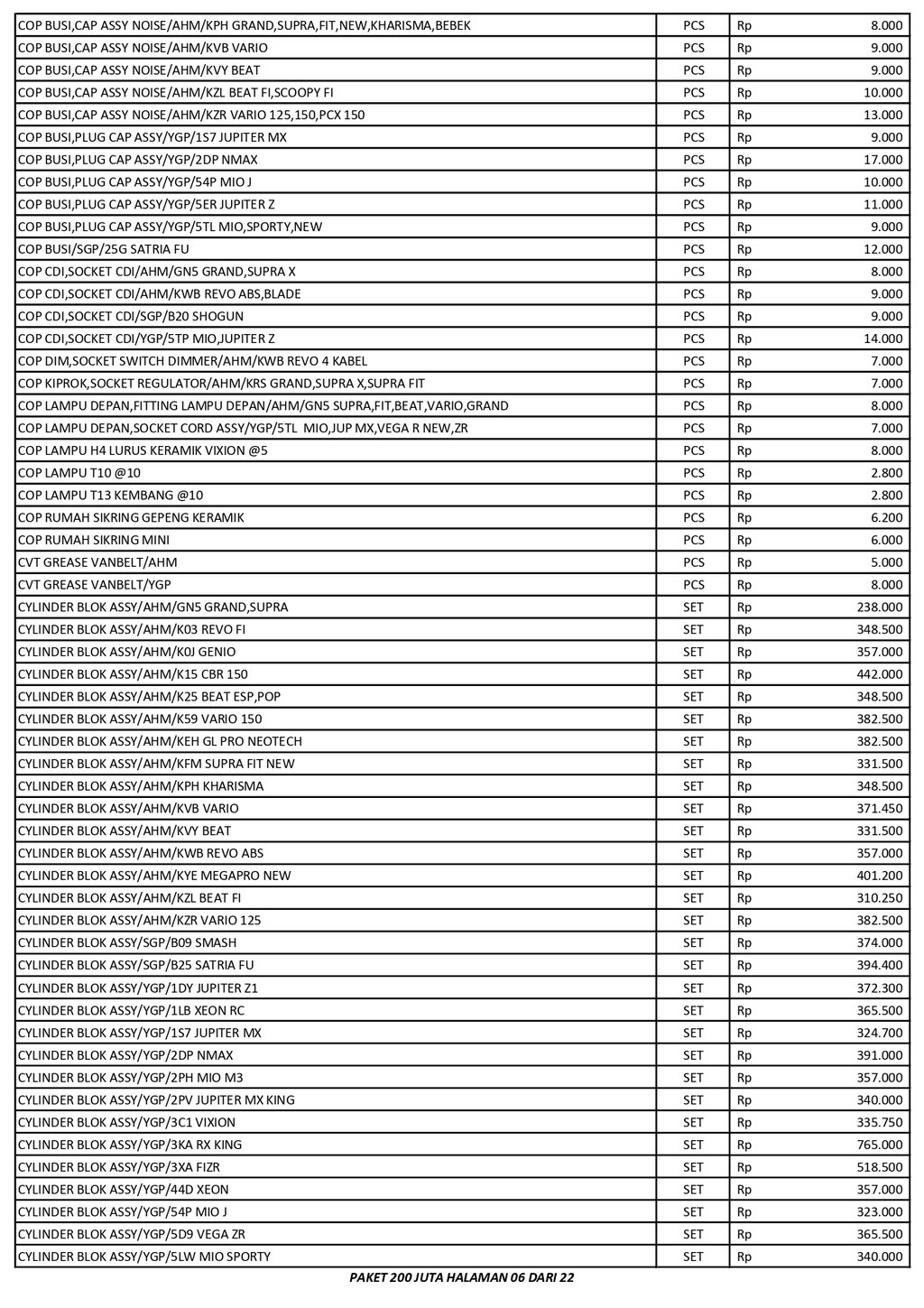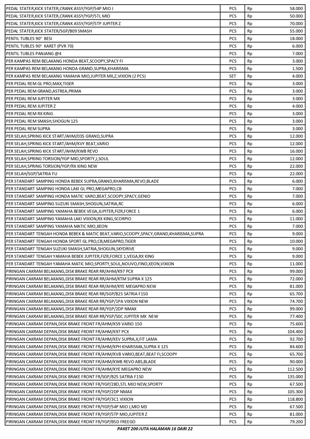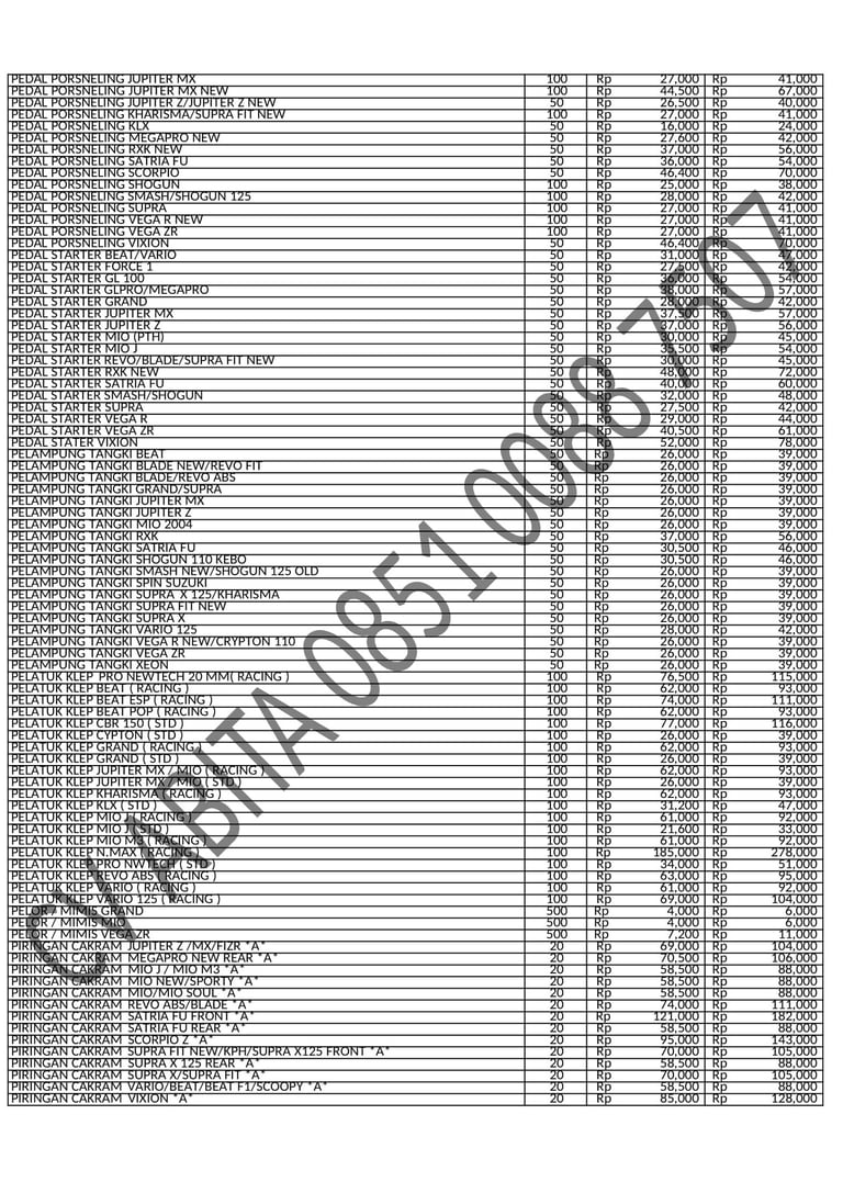 PRICELIST SPAREPART DAN OLI MOTOR 2023-2024