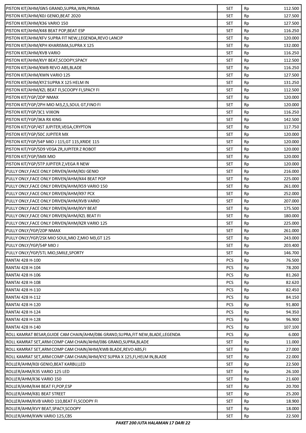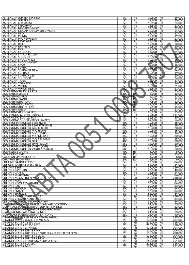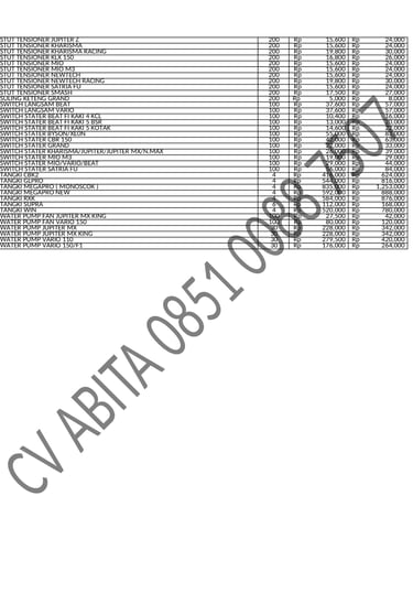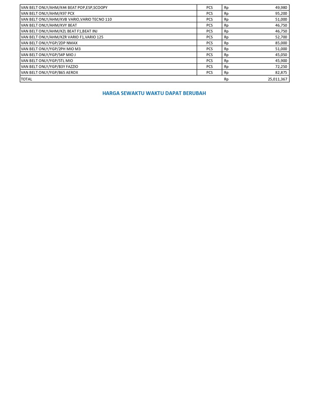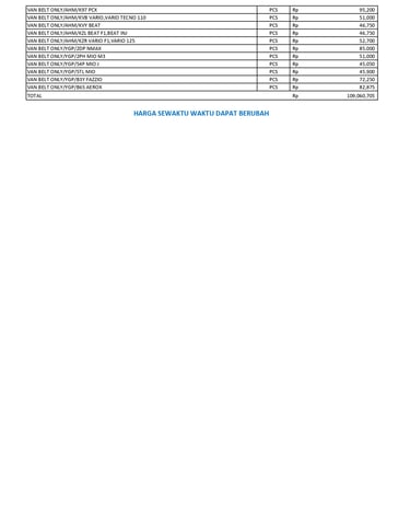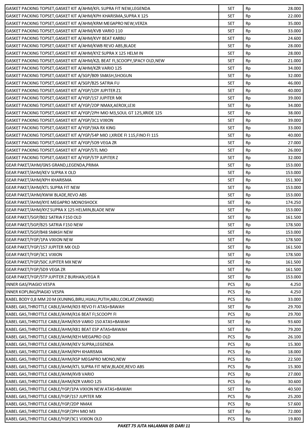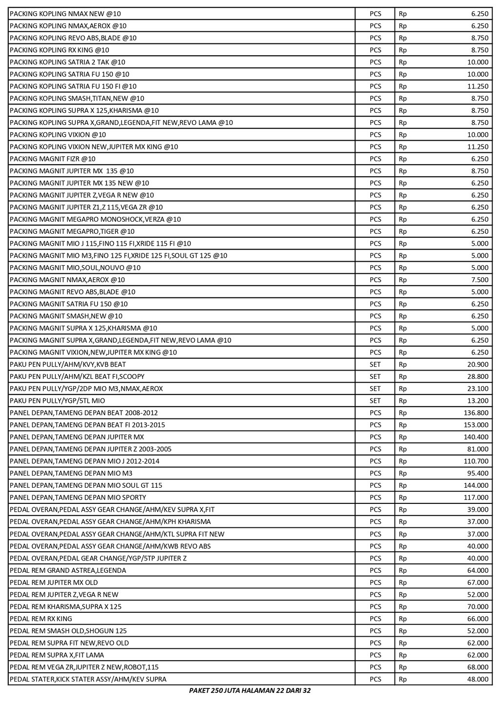 PRICELIST SPAREPART DAN OLI MOTOR 2023-2024