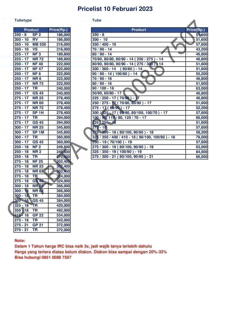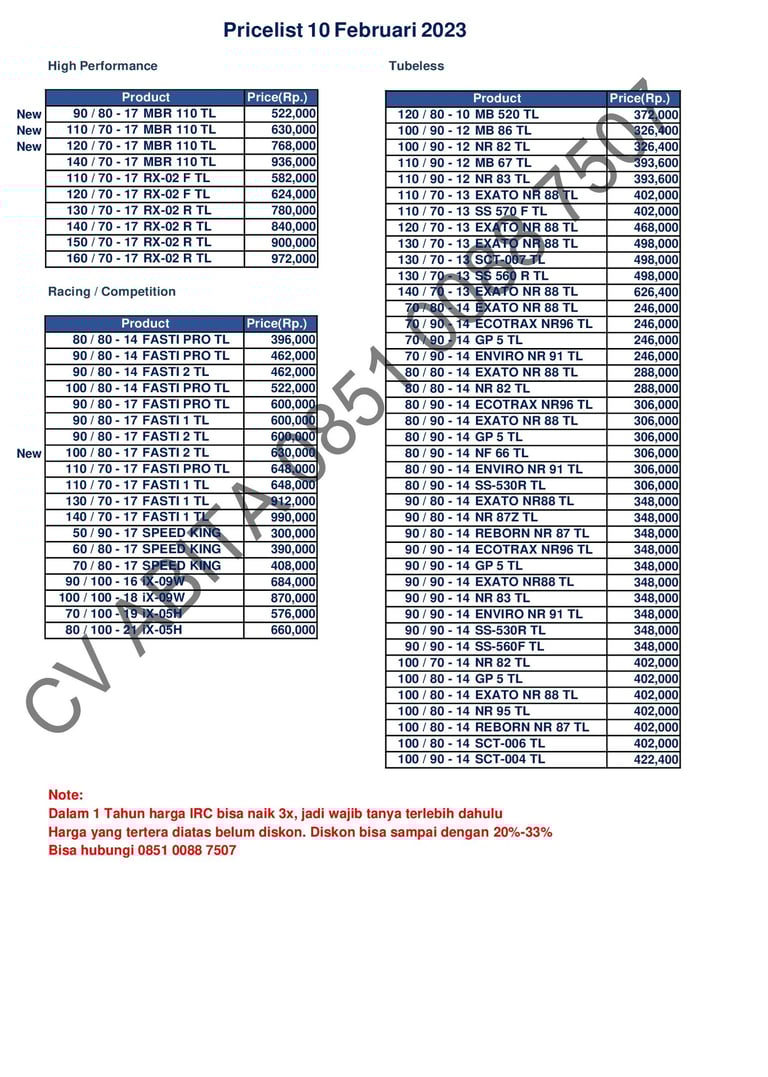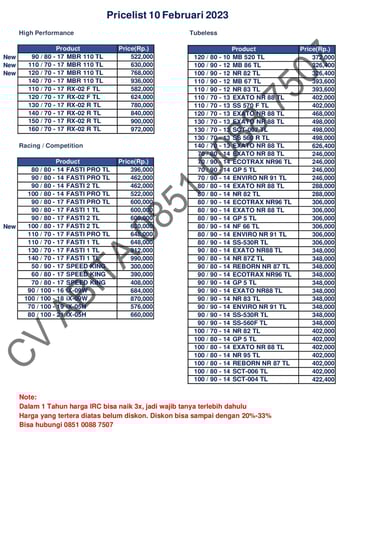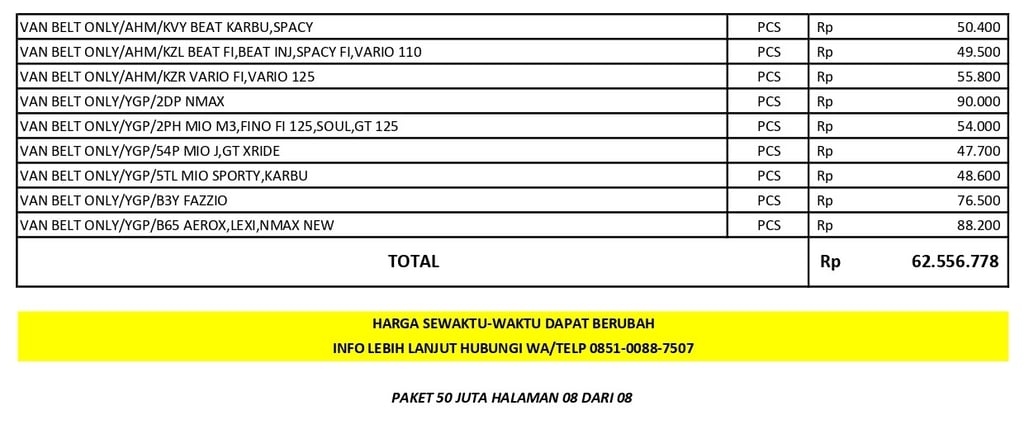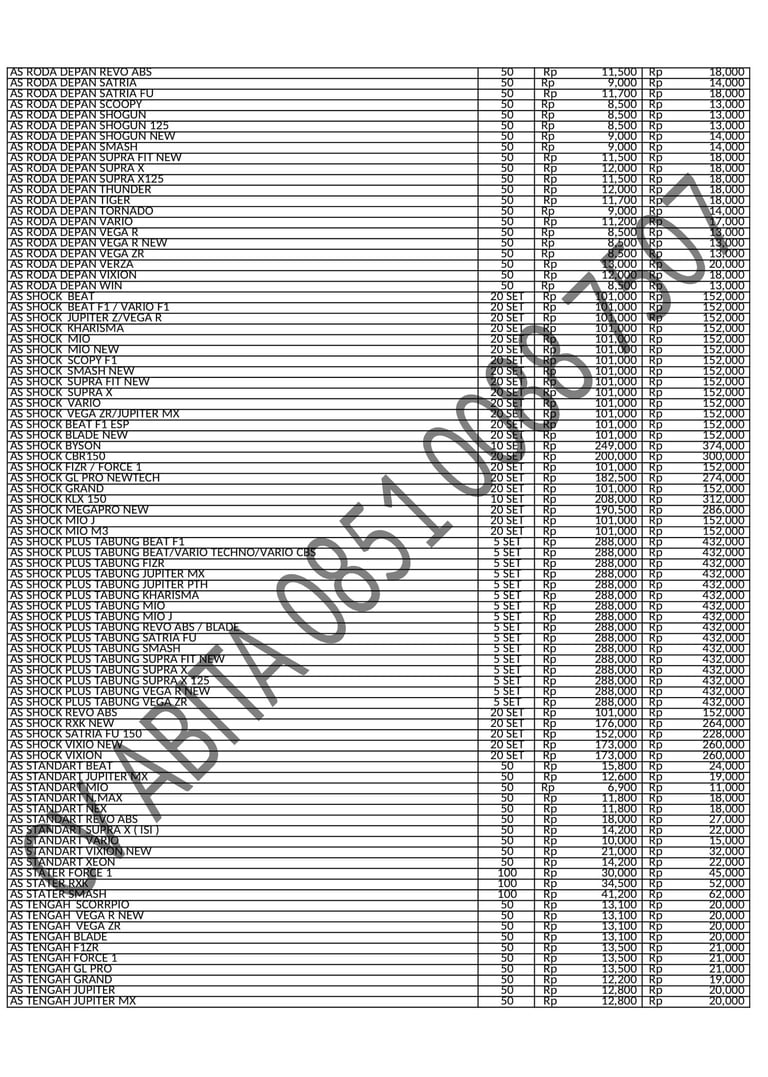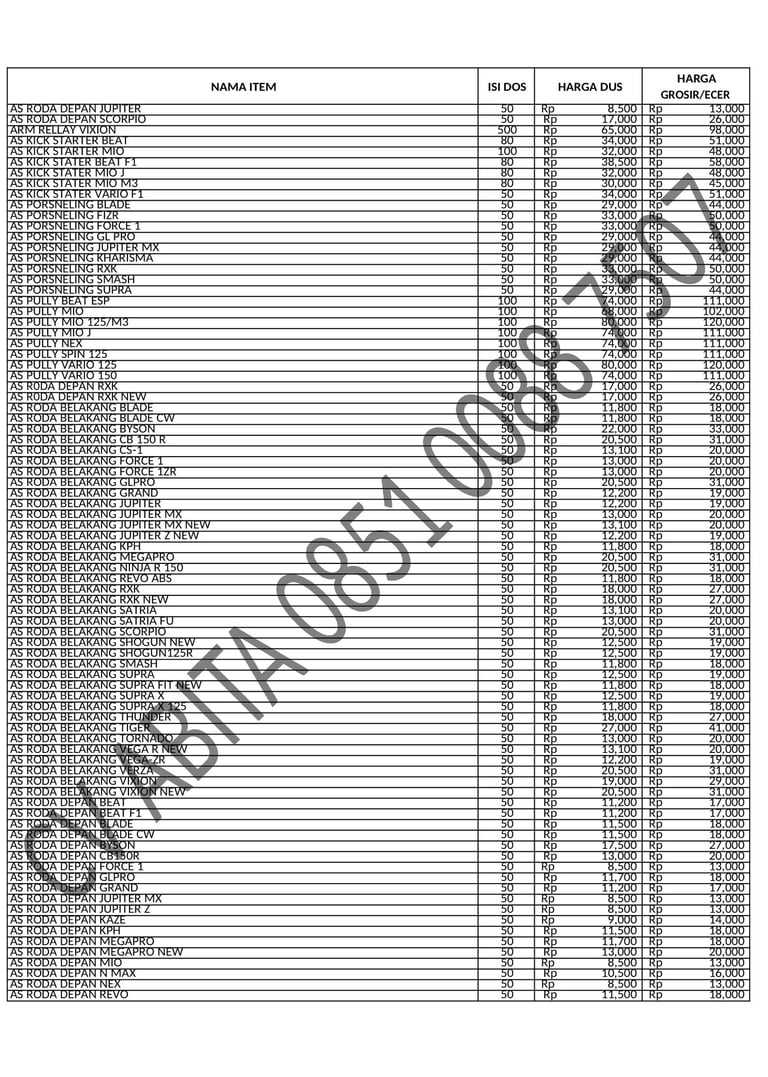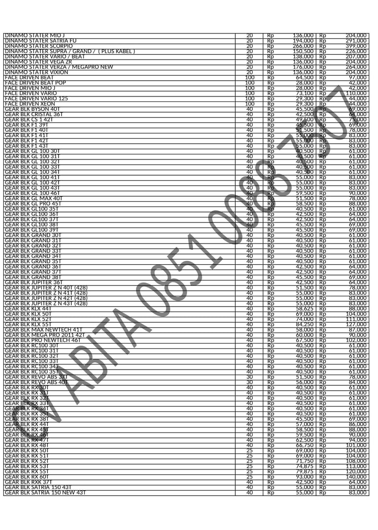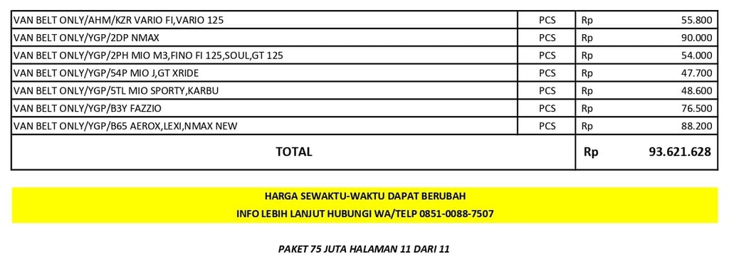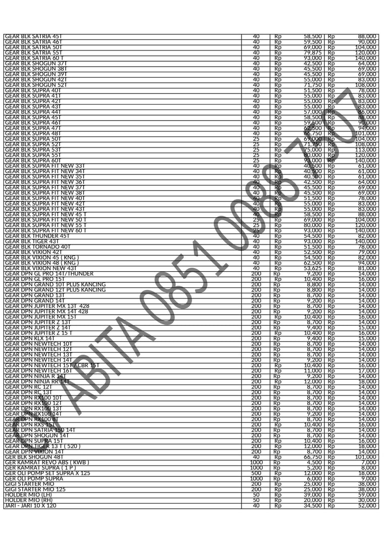 PRICELIST SPAREPART DAN OLI MOTOR 2023-2024