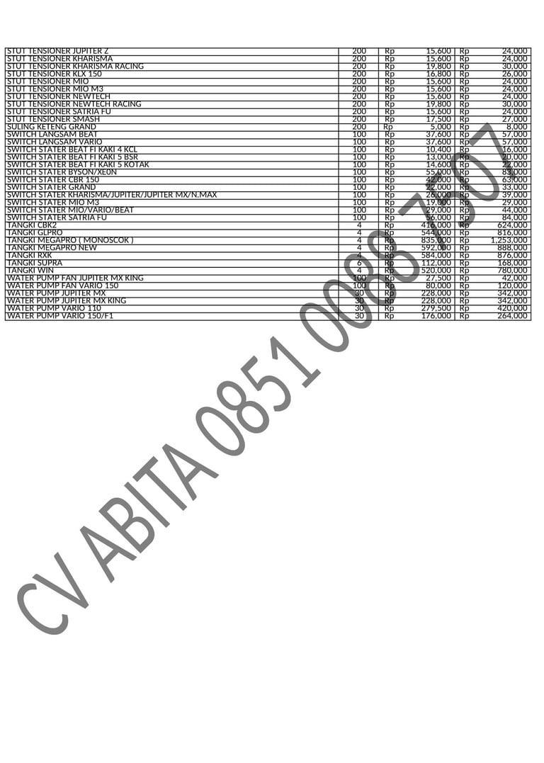 Temukan berbagai produk sparepart motor dengan kualitas terbaik dan harga terjangkau hanya di CV Abita Indo Abadi.